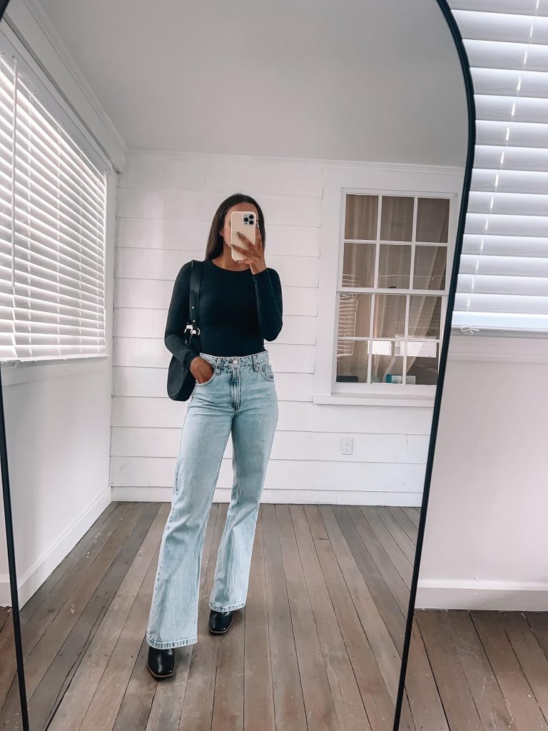 Not enough people talk about the important of capsule wardrobe pieces. Everything is this fall outfit isn’t just easy to wear on repeat, but also easy to pair with a number of different pieces. The long-sleeve bodysuit is something you can pair with shorts or skirts, and a good pair of light wash denim jeans goes with, honestly, everything.